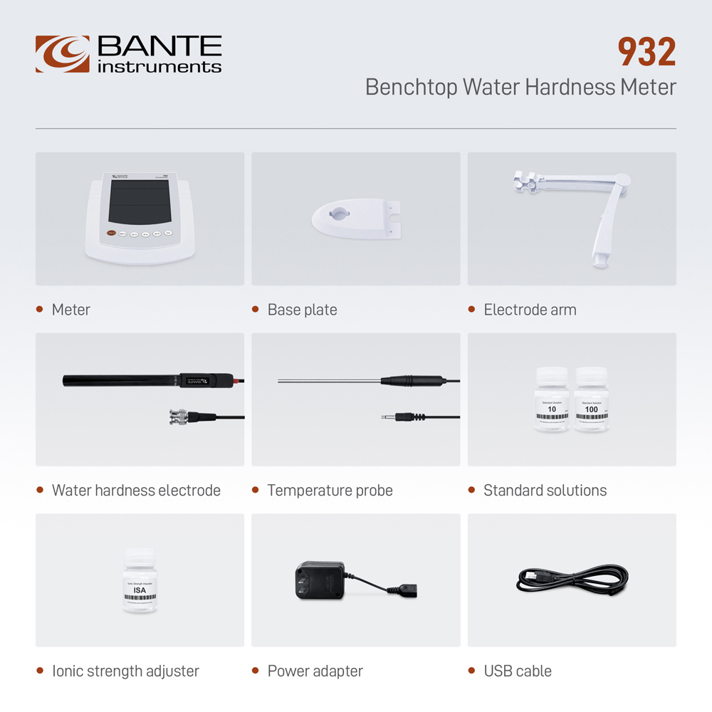 Professional benchtop water hardness meter, 2 to 5 points calibration, selectable measurement units, the meter is suitable for laboratory applications, accuracy: 1% F.S.
