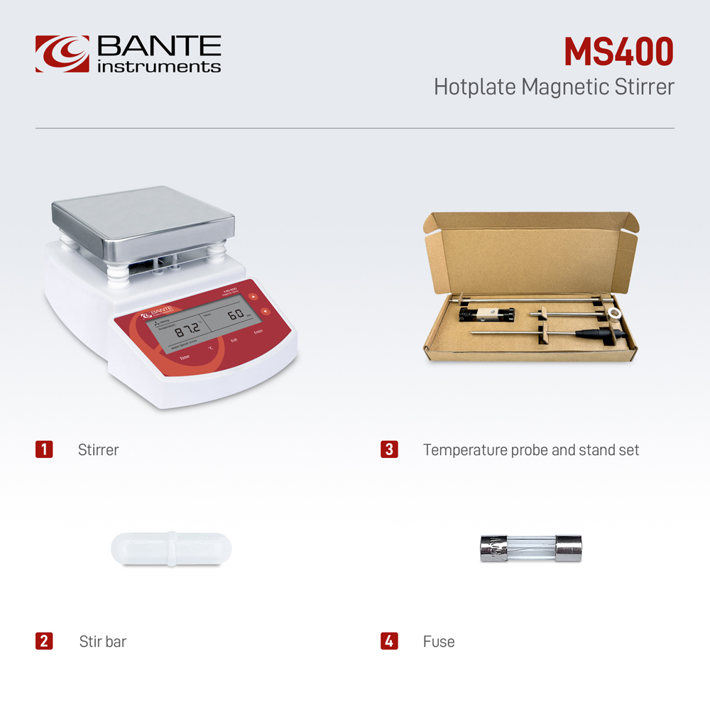 ? High-performance hotplate magnetic stirrer comes with a temperature probe.